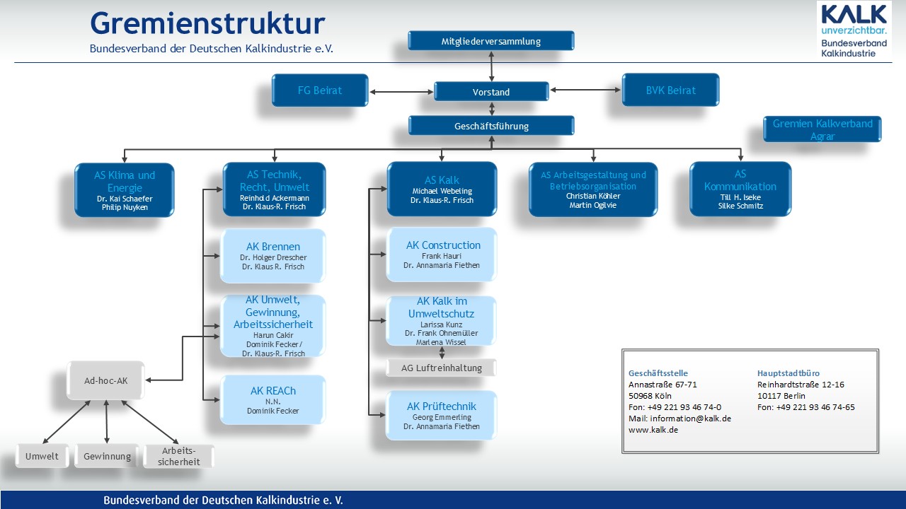 Sie möchten sich aktiv in die Verbandsarbeit einbringen? Dann melden Sie sich gerne über information@kalk.de.